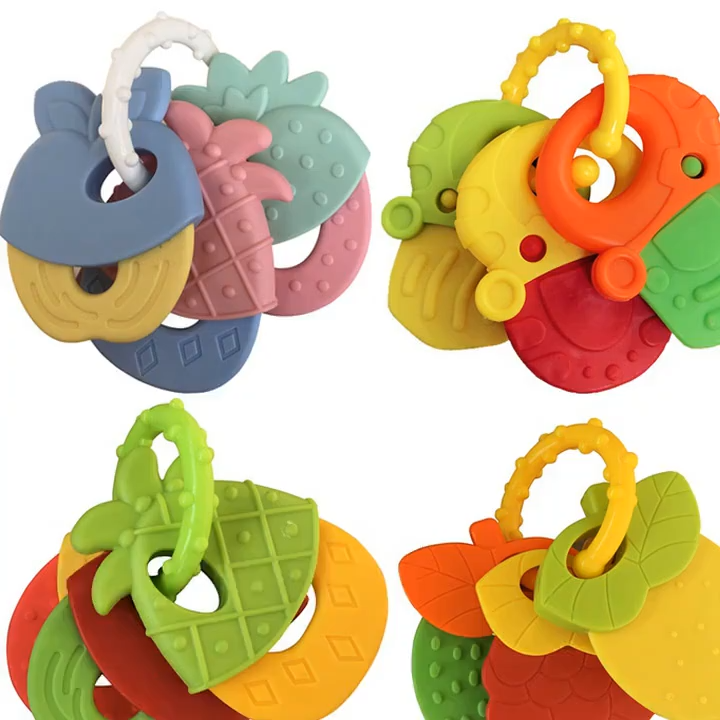 Baby Key Teether Silicone head Teether fitness educational toy CN -1pcs (Any Color)